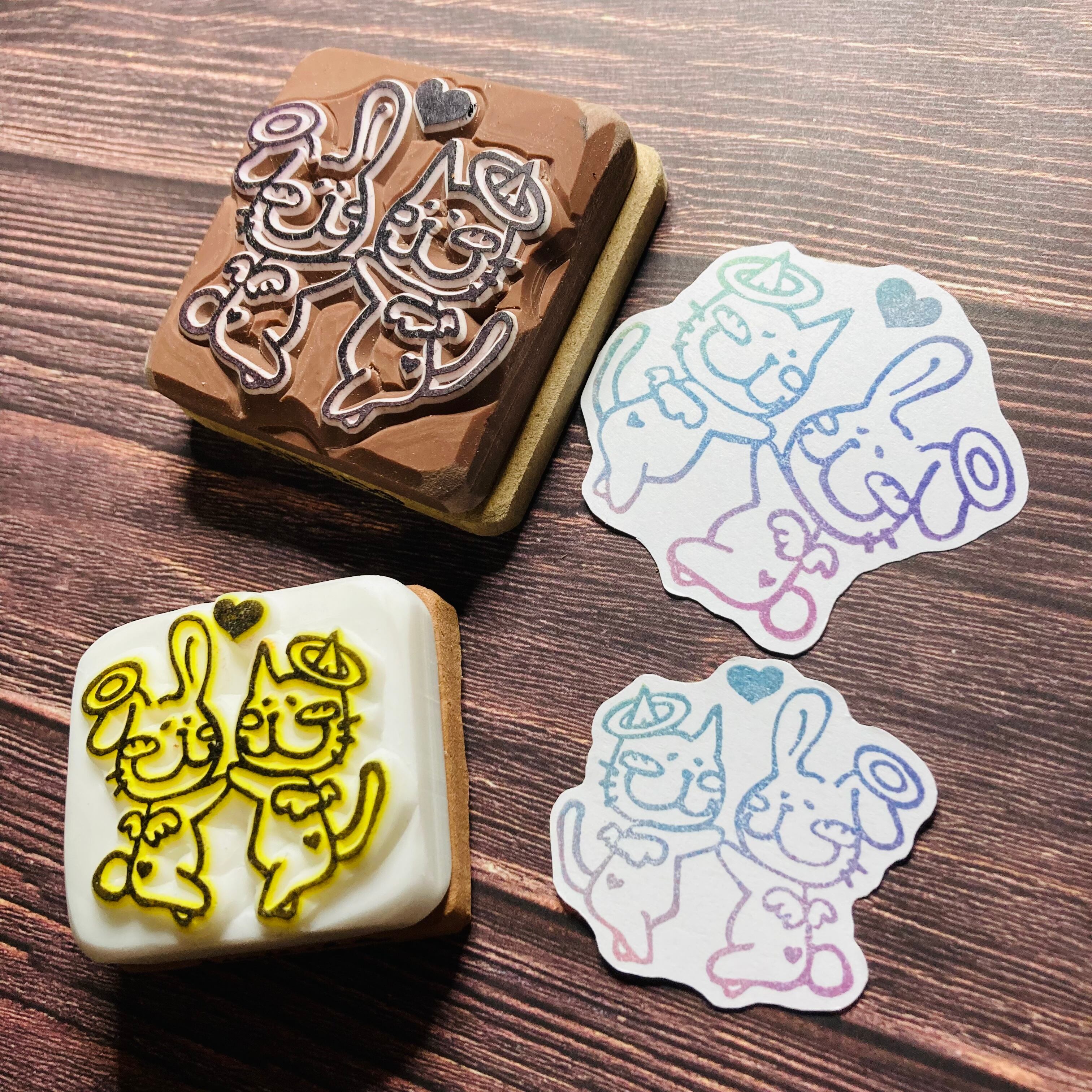 【消しゴムはんこ】ゆるねこうさエンジェル