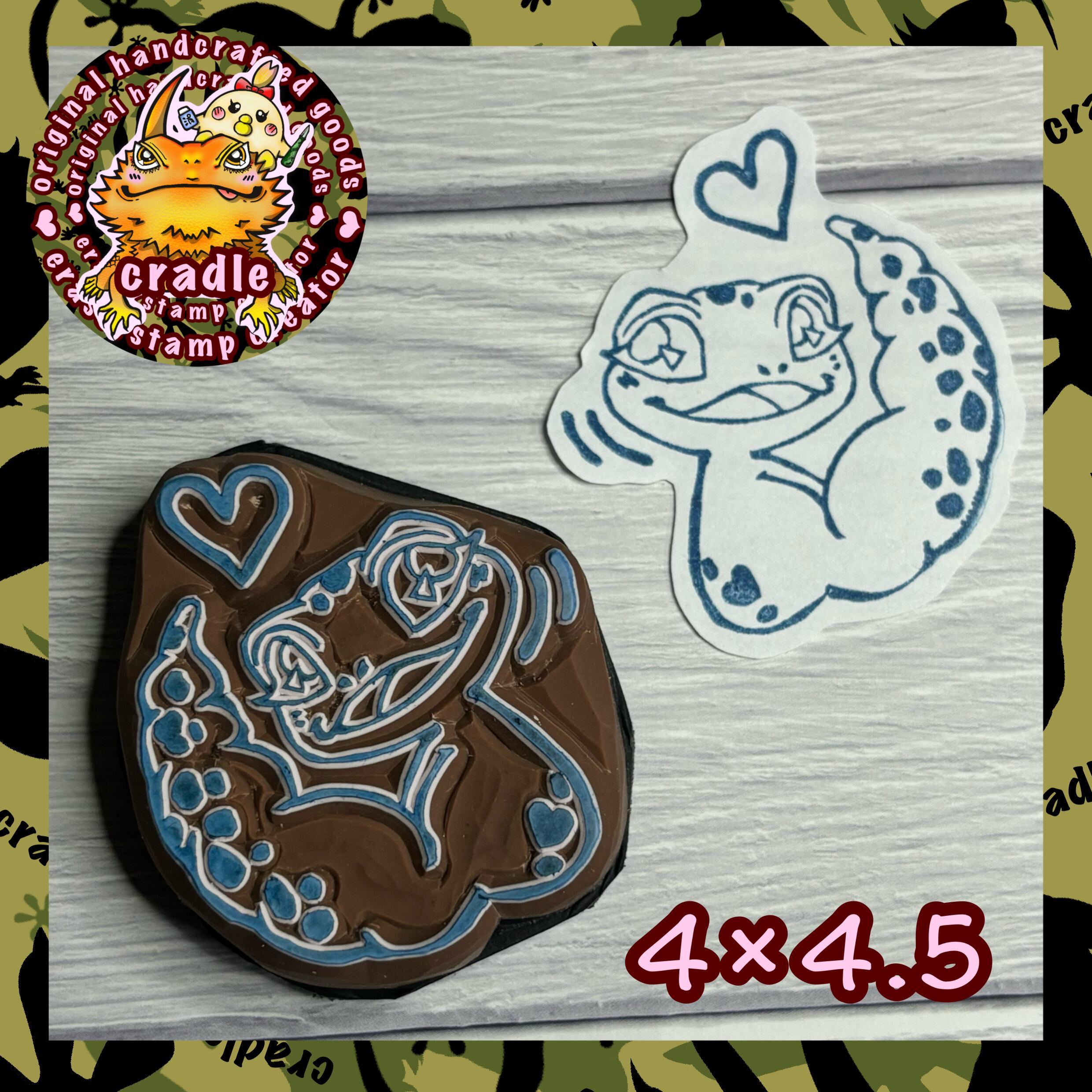 【消しゴムはんこ】ふり向き レオパ